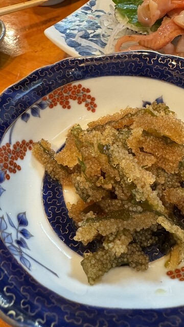 実はシャコということで、丸ごと唐揚げされてますが、頭からガブリといけます。クジラ竜田揚げ、子持ちこんぶ、ポテサラ等々、お腹いっぱいです。平日ということもあり、日本酒は控えま...