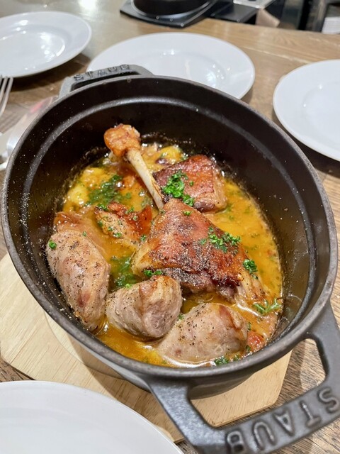 ビストロの代表料理の一つ“ステック&フリット”に拘り、牧草飼育で脂の少ない赤身の牛肉を、120日間の長期熟成を経て提供されています。独自の熟成技術により、穀物肥育のアメリカ牛や和牛の脂たっぷりの熟成肉とは一線を画す孤高の味わいを実現。10種を超える自家製シャルキュトリーを、厳選された世界中のワインと一緒に楽しめます。フランスの3ツ星でも修業し、四半世紀以上のキャリアを持つ女性シェフが全力で取り組む...ビストロ料理は、『酒飲めフレンンチ』の店名に相応しく、ワインとの相性を考え抜かれた品ばかり。オープンキッチンをぐるりとカウンターが囲む明るい店内は、いつも酒好きのお客様の活気に溢れています。