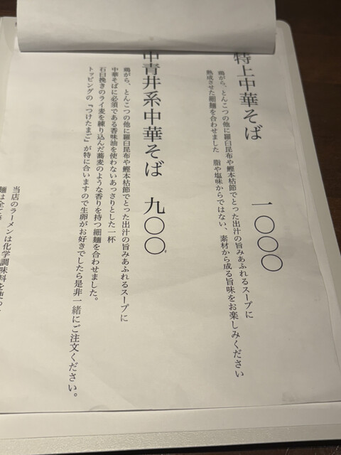 ✴︎メニュー名:中青井系中華そば