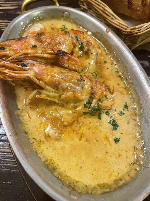 名物は外せないよねってことで海老のアメリカンクリームソース焼きなど定番メニューも注文。