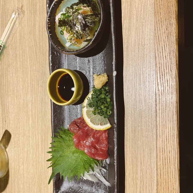 大名にある居酒屋、とりのてつさんに行ってきました。東京から講師の方をお呼びして講習会を開催し、お疲れ様会兼懇親会で利用です。講師の方から水炊きが食べたいとのリクエストがあり、一緒に運営していた方にお店の段取りをしていただきました。飲み放題付きのコース料理でしたが、馬刺しなども出てきてバラエティに富んだラインナップです。刺身は特に美味でしたが、肝心の水炊きの鶏がやや少なく感じました。お出汁は良かった...