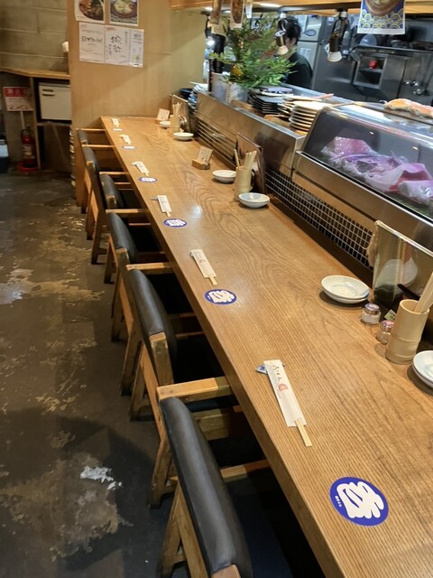 カウンター席新鮮な魚介類もりだくさん! (by お店)