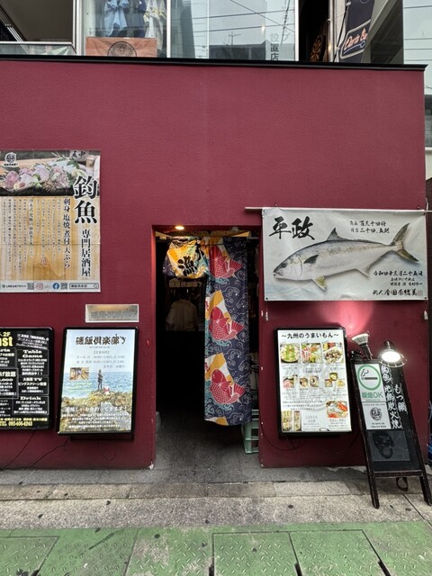 自分で釣った魚を持ち込むと調理してくれて、美味しい鮮魚と地鶏やもつ鍋などの九州料理も食べれる【磯飯倶楽部】へ。
