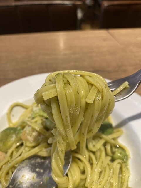 店頭メニューを見る限りでは、パスタは大体全部1,000円未満。入店してカウンターで「海老とアボカドのバジルソースパスタ」880円をオーダー。