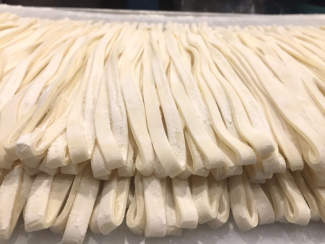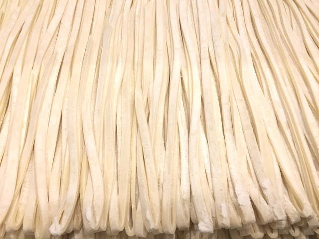 お店で作る自家製麺は平打ち麺! (by お店)