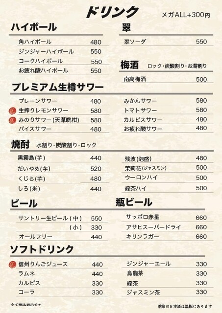 | ドリンク | 日本酒あり、焼酎あり、ワインあり、日本酒にこだわる |