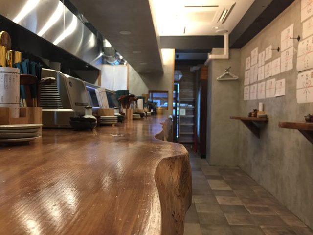 一枚板のカウンター!日本酒のドブヅケも! (by お店)