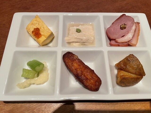 ・オードブルプレート たまごといくら、湯葉、鴨のハム セロリの浅漬、さつま揚げ、フライドポテト おつまみにちょうどいいですねー お酒のエンジン全開ですね! ・しらすと海藻の豆腐サラダ 自家製ドレッシングが美味しいです。 海苔も香りがいいですー 写真撮り忘れてますねー... 詳細を見る