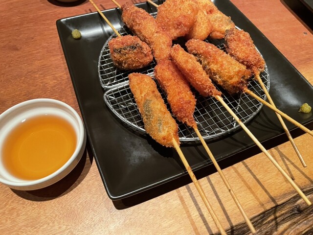 【接待,会社の宴会などにオススメ】★串揚げと特上黒毛和牛ステーキの豪華コース★6000円(税・サ 全て込み)7品