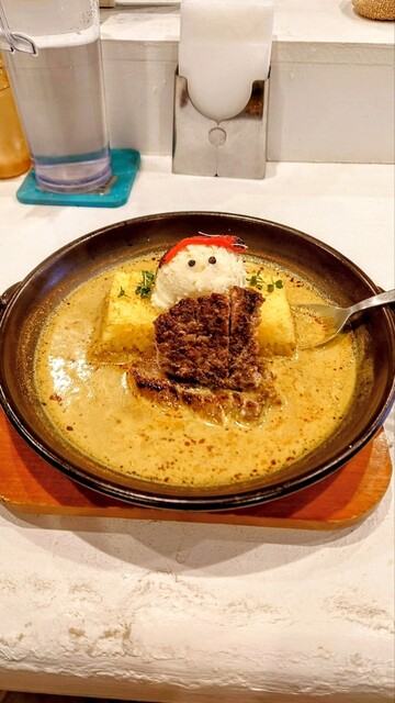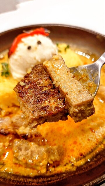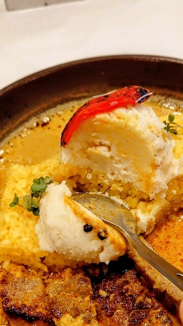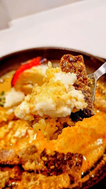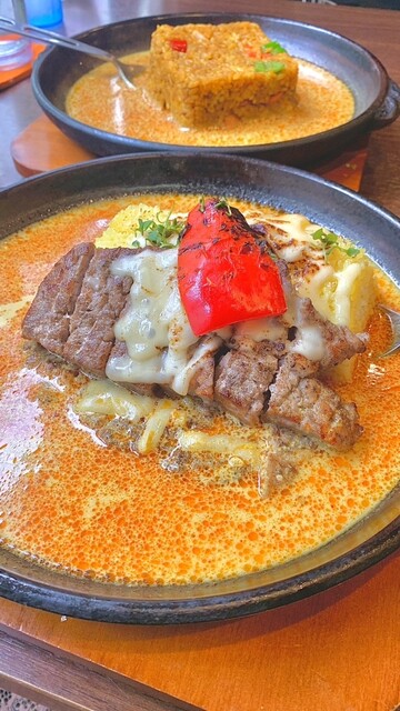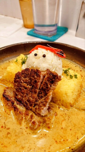 行列のできる本格スリランカカレー 店内の壁にはゾウの絵が描いてあり、異国感を感じる ☑︎豚肩ロースステーキカレー(レギュラー+炙りチーズで1500円) 出てきてその大... 詳細を見る