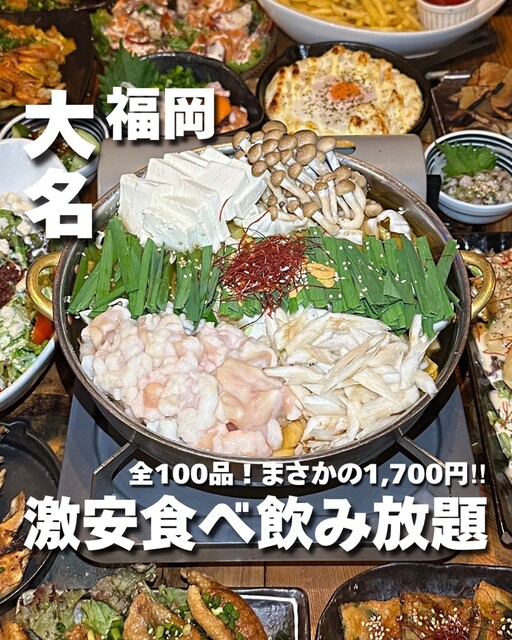 お店の詳細はこちら 【天神で1番安い?1,700円で100品が食べ飲み放題!?】 ______________________________ 大名の『創作居酒屋10... 詳細を見る