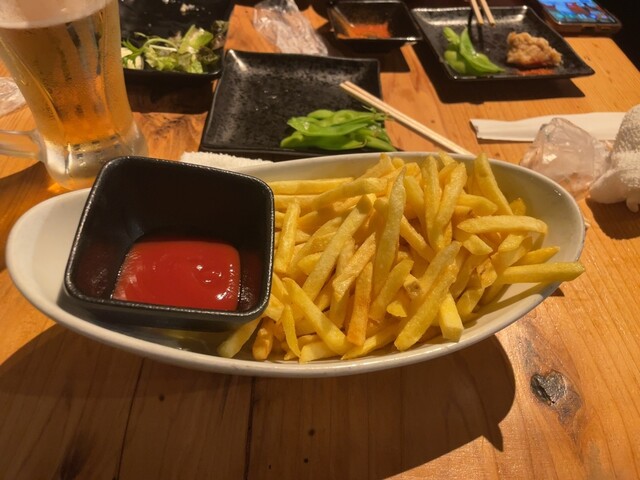 さて、コースのルールですが、先ず最初に提供されるのが鍋料理、それと枝豆、ポテトフライ、唐揚げの提供があり、それらを食べてから初めてモバイルオー...
