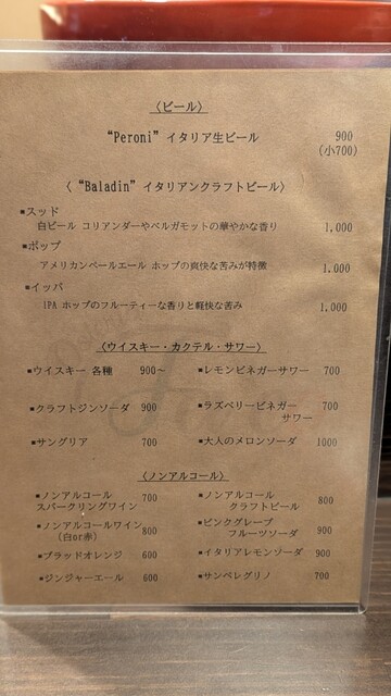 飲み物のメニュー
