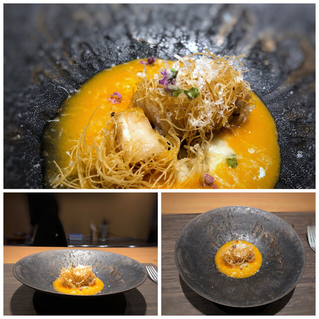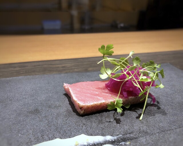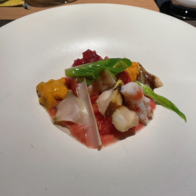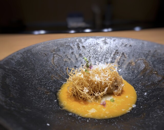 「その日、その時の食材がどうすれば美味しくなるか」をコンセプトに、ジャンルにとらわれず、メニューから食材を選ぶのではなく、食材からメニューをつくりだす、食材に寄り添う料理、そんな小さなレストランです。ワインはブルゴーニュを中心に、イタリアはピエモンテ、トスカーナを主に取り揃えており、日本酒は阿蘇の酒屋さんから熊本の地酒を。ペアリングも承っております。