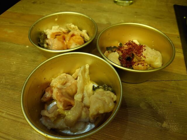 塩系と辛系のホルモンを注文