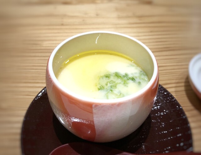 *茶碗蒸しはトロトロ、天草大王とアオサの旨味を感じ、いつもながら美味しいですね。