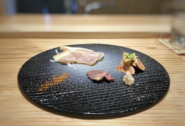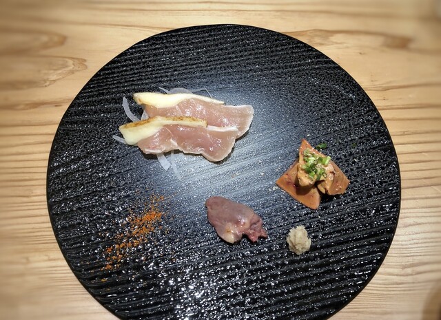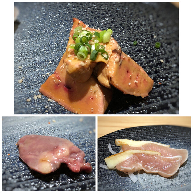 *ムネ肉のタタキ、ハツ(心臓)、砂ずり、軽く炙った白肝・・全てが美味しいですが、白肝は毎回絶品ですね。