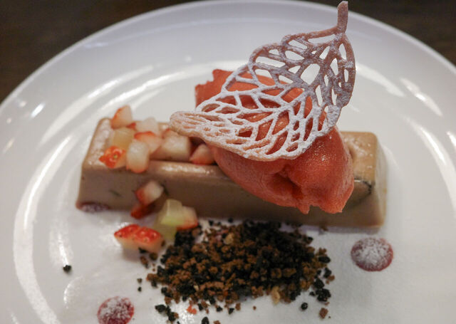 フォアグラとフランボワーズのマカロンのサンドは、フランボワーズの香りが強く、フォアグラのうま味甘みと相まって、非常においしかった。