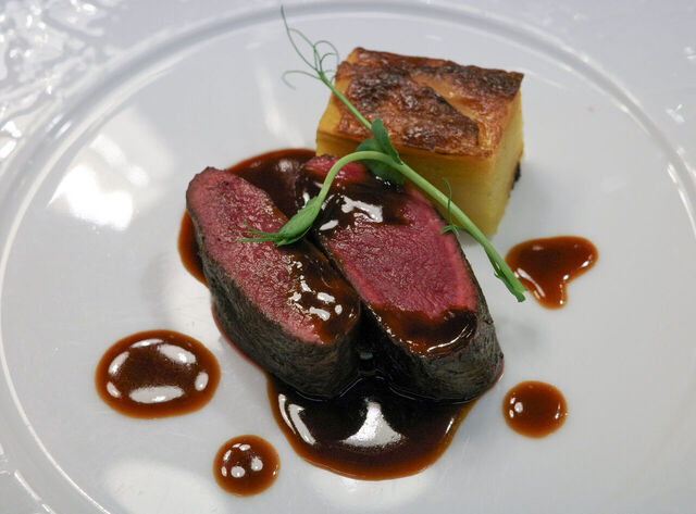 メインは子鹿の薪焼きと安納芋のミルフィーユ