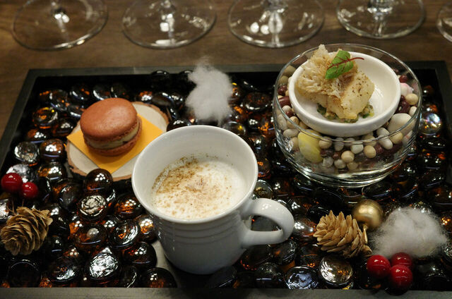 百合根とエスプレッソのスープと栗のエキューム(泡)