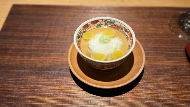 生姜餡と銀杏、山葵が季節を感じさせる温かい一皿で、体の芯からほっこりします。