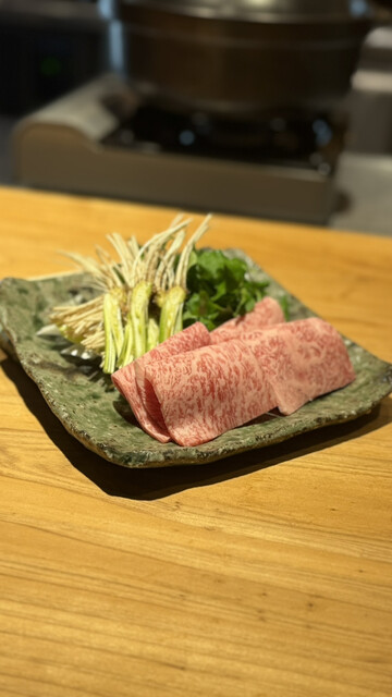 ◯壱岐牛と松茸、九条葱の出汁しゃぶ