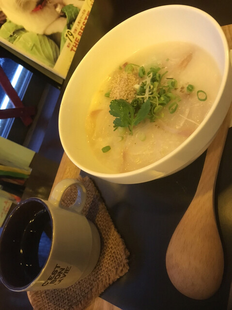 お腹が空きすぎて、丸飲み5秒で完食。おいちい〜。味は薬膳料理とか本場のお粥というより、カフェのお粥という感じ。