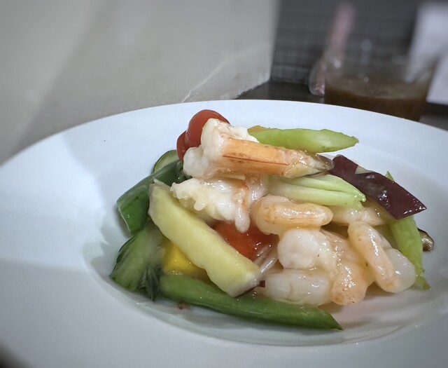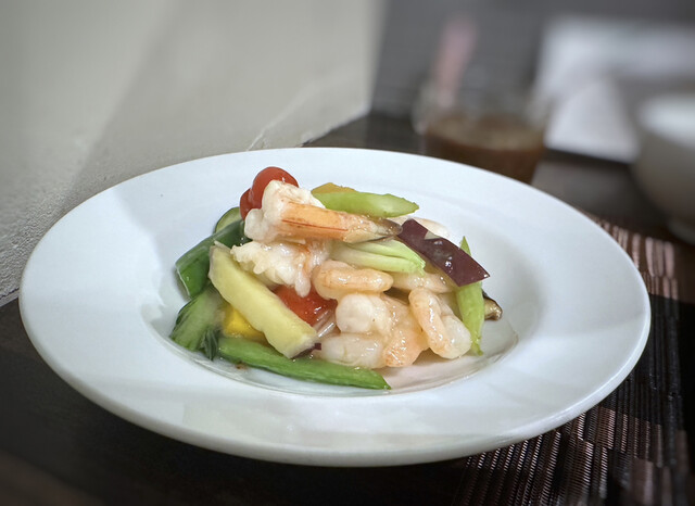 頂いたのは・・定番中華のセットから「大海老と小海老のあっさり塩(1,600円:税込)」。