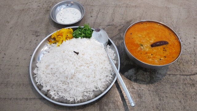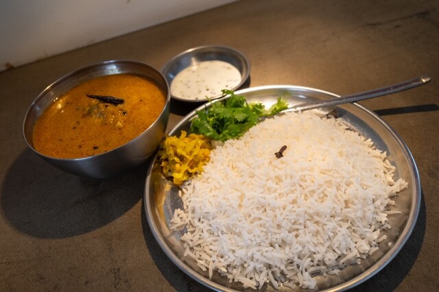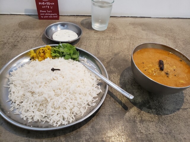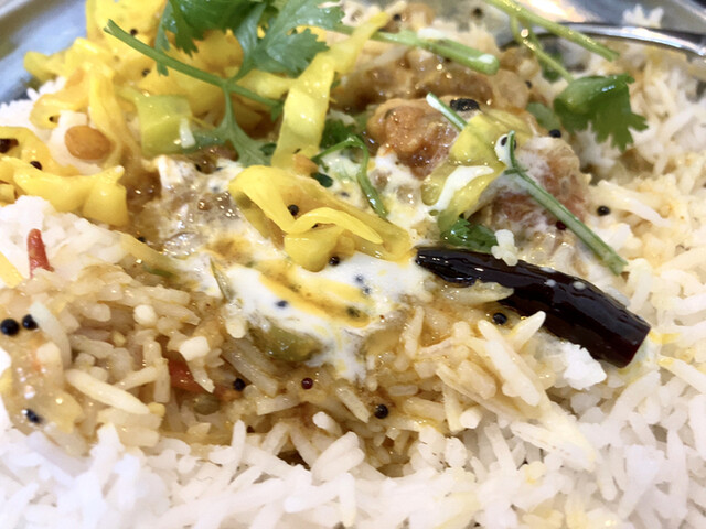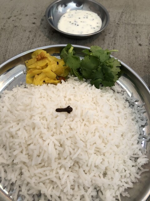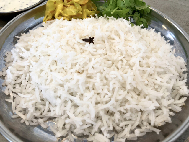 真っ白なバスマティーライスの上にクローブがひと粒乗るのがしのぶ流♪
