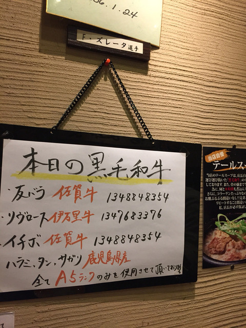 げんは、黒毛和牛のA5ランクのみを使用している焼肉店で、佐賀牛取り扱い店。大満足‼︎壁には、ソフトバンクホークスの選手のサインがずらり。さぞやたくさん召し上がるんでしょうね〜。