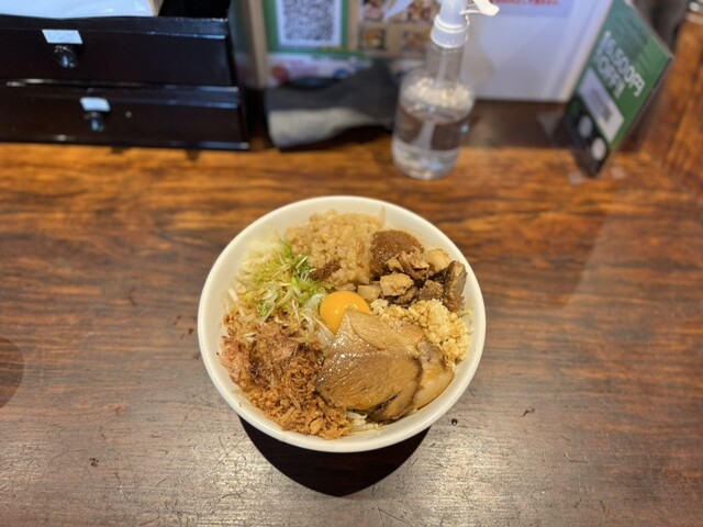 マシマシってどのくらいなのかしら~と 興味津々でコチラのお店に初訪問…! 注文内容は(最終的に?)こちら✍︎꙳⋆ ・スペシャルラーメンニンニク以外全マシマシ(税込¥1330) ・肉脂丼DX(豚1枚サービス)(税込¥550) ・白ご飯(小)(税込¥150) ・生卵(税込¥100) ... 詳細を見る