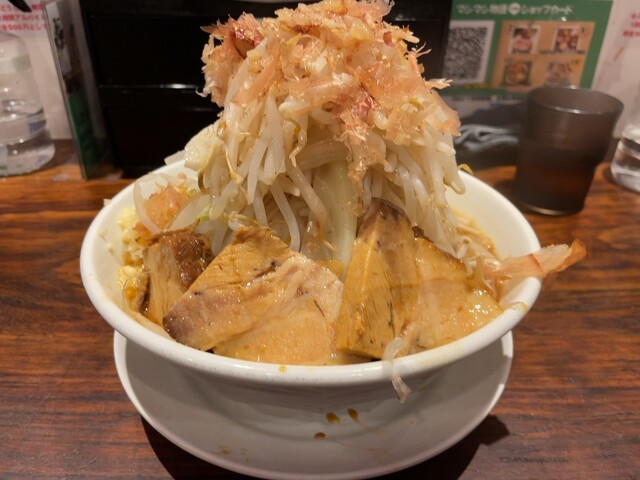 初の二郎系! 夜ご飯に行ってみよー、てことでお散歩がてら徒歩で移動。 お店定番の豚ラーメンを券売機で購入。 食券にカスタム仕様を記入します。 やさいマシ、かつおマシ、あ... 詳細を見る