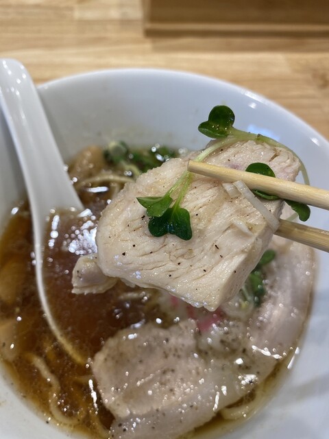 鶏そば 960円 麺大盛り 180円 前回は新登場のもやし背脂キレ白湯だったので、今回は原点回帰で鶏そばを注文。 鶏の効いたスープが素晴らしいが、チャーシュー麺でもな... 詳細を見る