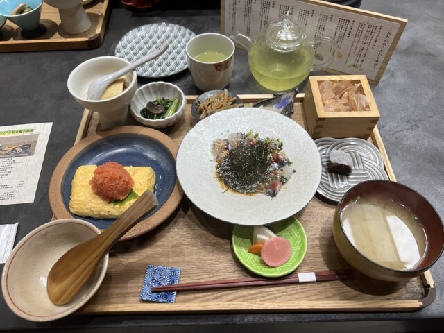朝夜の御膳、夜にはコース料理や居酒屋メニューが楽しめます。