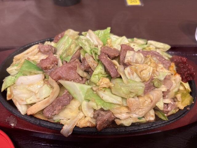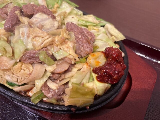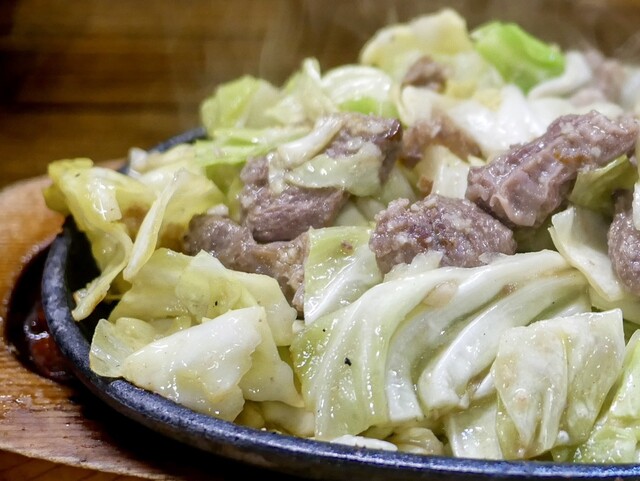 鉄板焼肉、「ガツンとにんにく&キャベツ」 誰もが大好きスタミナ飯。 豚ハラミとキャベツを特製の油とにんにくで鉄板焼きにした、福岡のソウルフード。 熱々の鉄板で提供され、最後ま... 詳細を見る