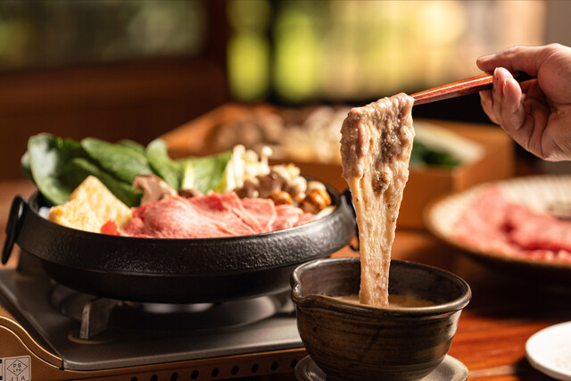 お勧めは玉子を混ぜたとろろで頂く黒毛和牛のとろろすき焼き。