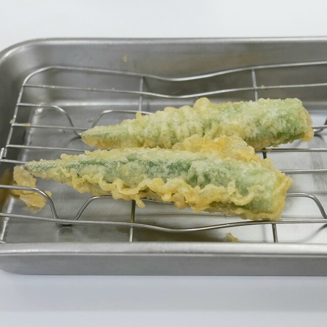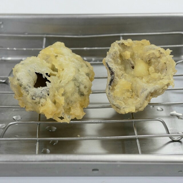 連日、天ぷらを求める人で賑わっている。昼時や夕食時になると満席になる事が多いので、待たないと入れないこともしばしば。カウンター席に腰をかけ、お店に入る前に買った食券をお店の方に差し出せば目の前で揚げてくれ、揚げ皿に揚げたての天ぷらをひとつひとつ出してくれる。【天ぷら ひらお】といえば、イカの塩辛が美味しいということも有名。もちろん無料なので、好きなだけ楽しめる。また、ご飯と一緒に箸を進めれば...
