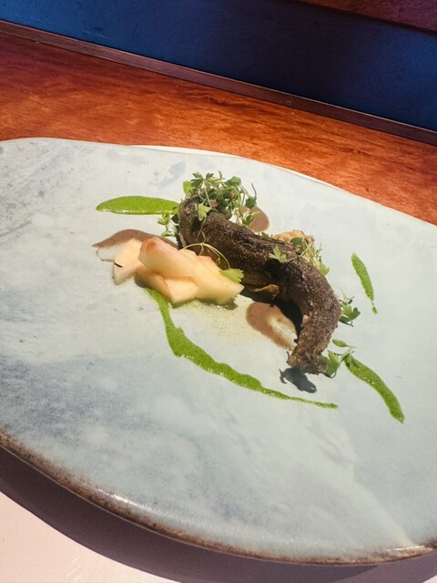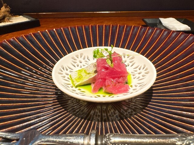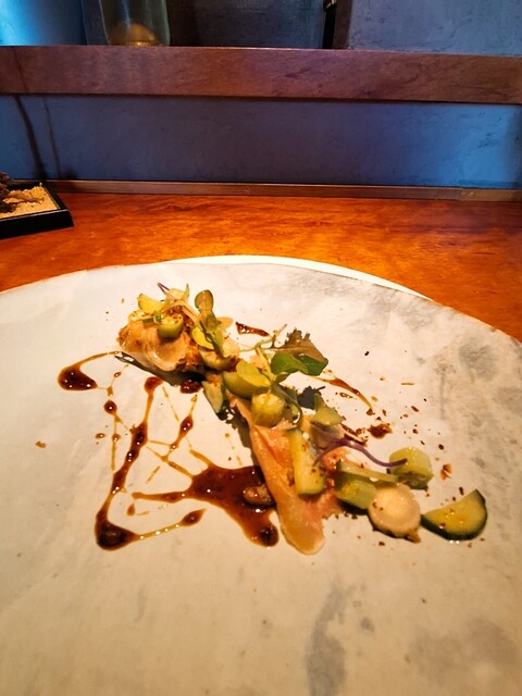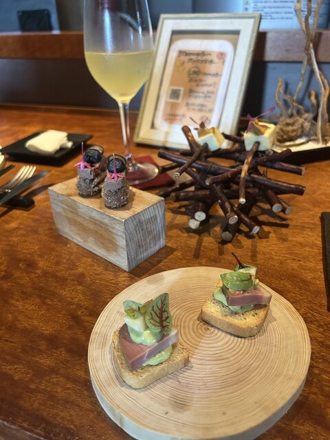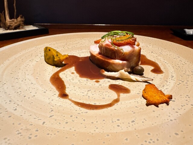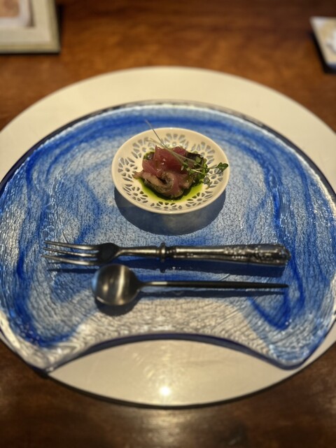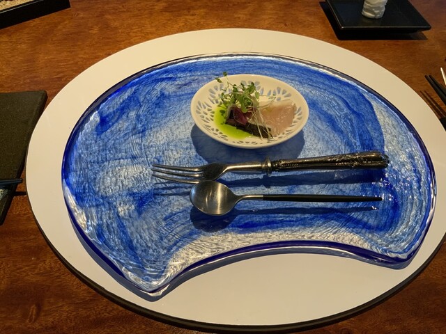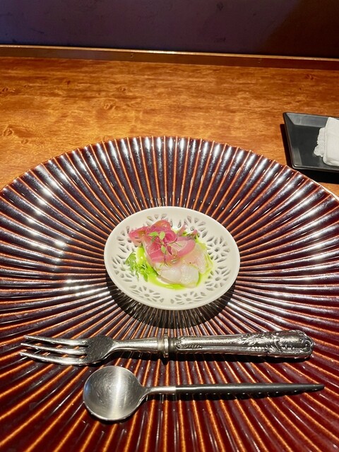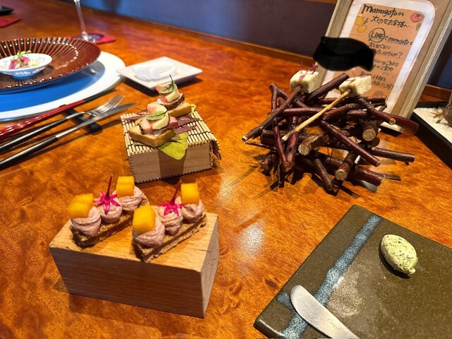 「2025フレンチWEST百名店」に選出されている「restaurant mamagoto」。フレンチの枠に捉われない品々を用意されております。液体窒素や最新の調理器具を使ったムースなど、味わいも食感...