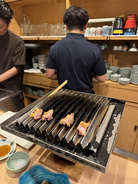 焼き上がった鶏は、表面は香ばしく、中は驚くほどジューシー。部位ごとの食感や旨みが分かりやすく、「あ、鶏ってこんなに違うんだ」と思わせてくれます。串から外す手間も...