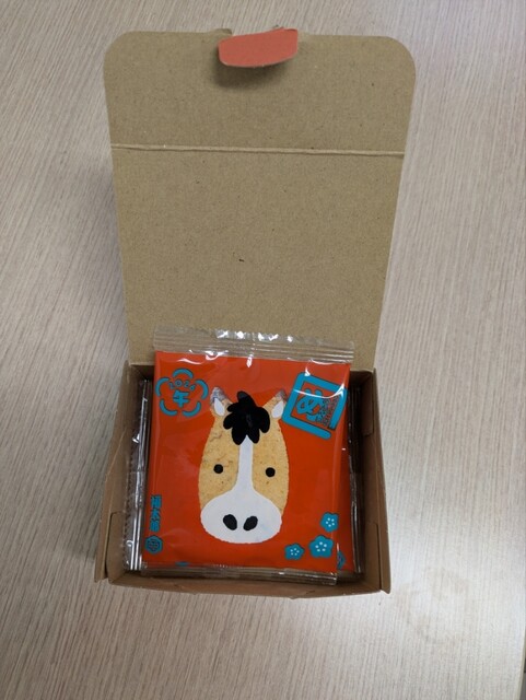 味しい!! 個包装で一袋に2枚ずつ入っています。戴いた箱は