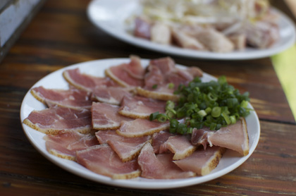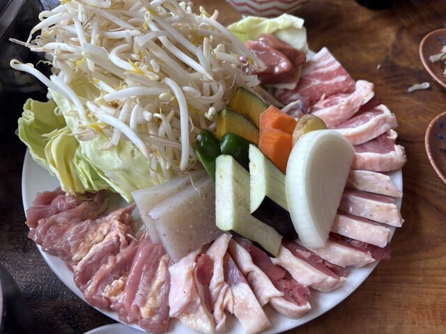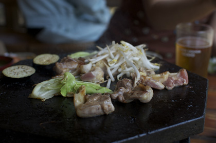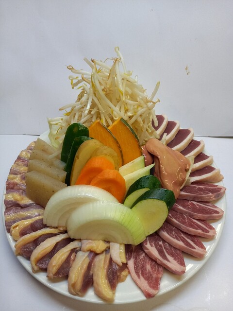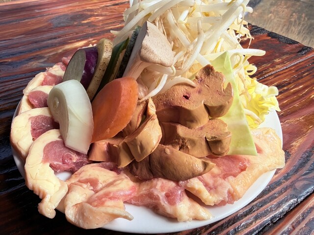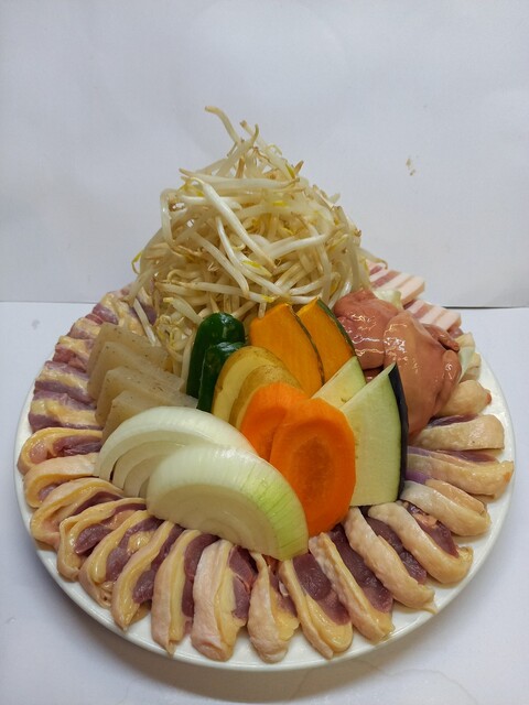 全て脂選別した種鶏・親鳥を用意して居ります。 溶岩プレート焼きの特徴は遠赤外線でフックラ、更にプレート上に残る脂が野菜に絡まるので、ロースターや炭火焼きに比べて、特に野菜類が美味しいのも特徴です。 脂が飛び散るので、市街地では中々営業出来ない焼き方です。