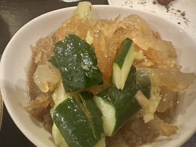 お通しから、水餃子、きくらげと平らげていく