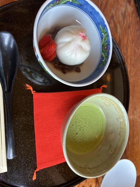 久々な岩井屋さんに立ち寄りました。ドアを開けて中に入ると和の雰囲気がとても落ち着く素敵な空間です。今回はお抹茶セットをお願いしました。お抹茶といわい餅こしあんのセットです。こしあんがとても滑らかでちょ...