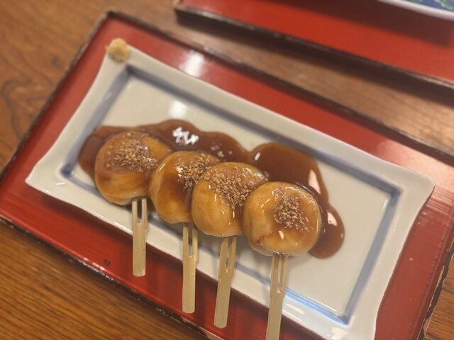 店に入れば広い座敷からの庭園を愛でながら頂く焼餅や甘味