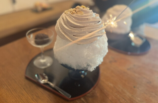 エスプーマかき氷メニューの中から、岩井屋のしろくまくんを注文。