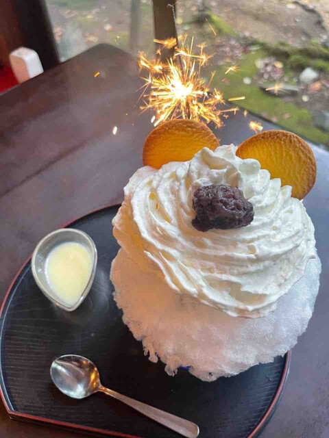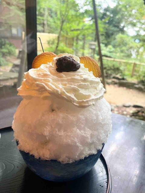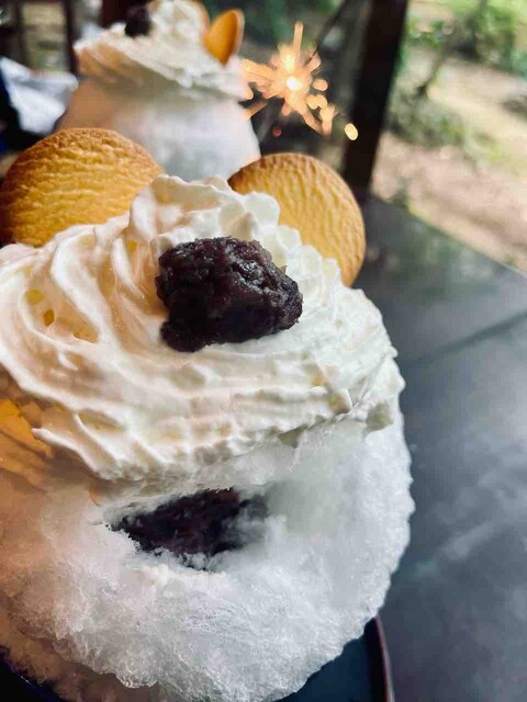 氷の上に練乳をエスプーマにされたものが乗っている。練乳エスプーマは甘さは...