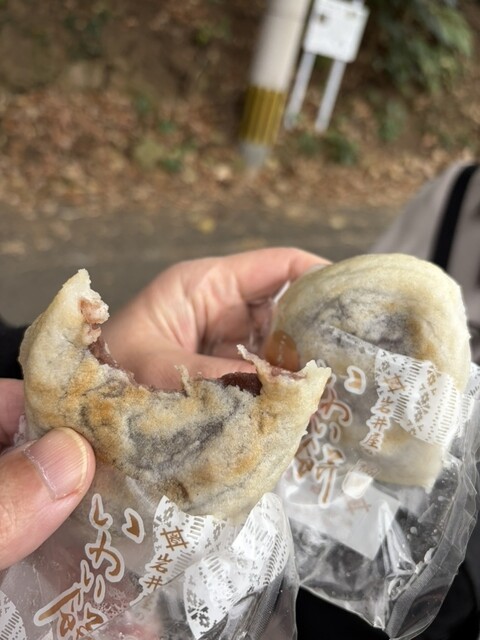 こし餡を妻と一個ずつ買って、急な参道の階段を登りながらパクパク