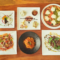 ▪︎前菜5品盛り合わせ ▪︎サーモンのカルパッチョサラダ仕立て ▪︎マルゲリータとジェノベーゼのハーフ&ハーフ ▪︎ウニのトマトクリームパスタ ▪︎黒毛和牛のタリアータ 粒マスタードとはちみつソース ▪︎ドルチェの2種盛り