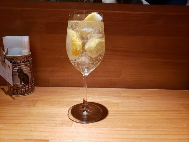 お店の外の看板を見るとハッピーアワーがやっているようで、タイミングが良いと思い入りました。(18〜19時まで、ハイボール・レモン酎ハイ、グラスワイン(赤・白)が1杯300円と言うことでした)