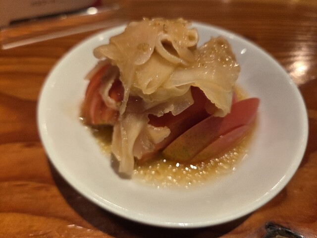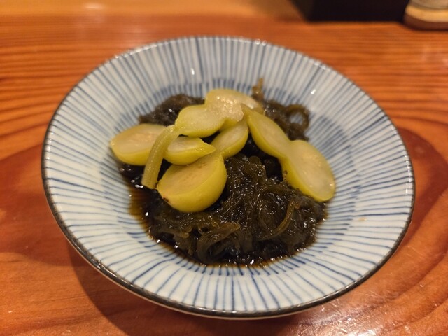 西のうめぼしさんに入店。携帯でメニューを読み込みオーダー。お酒は焼酎のお湯割り。瓢箪もずくとはなんだろう?とりあえずオーダー。ミニ瓢箪を酢漬けしたものともずくで美味しかったです。ガ... 詳細を見る